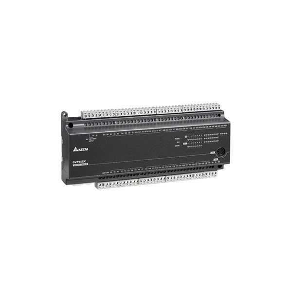 The Delta DVP-EC3 Series DVP32EC00R3 and DVP32EC00T3 are cost-effective standard programmable logic controllers designed for industrial automation applications. These models feature a compact design with 32 I/O points (16 inputs / 16 outputs). The key difference lies in the output type: DVP32EC00R3 features Relay outputs for flexible AC/DC switching, while DVP32EC00T3 features Transistor outputs for high-speed DC switching with longer lifespan. Powered by 100-240V AC, they offer built-in RS-232 and RS-485 communication ports, supporting Modbus ASCII/RTU protocols for easy integration into control networks.