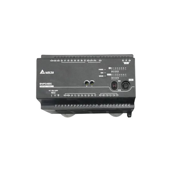 The DELTA EC3 Series Programmable Controllers DVP48EC00R3 and DVP48EC00T3 are high-performance, standard compact PLCs designed for mid-range automation applications. As part of the DVP-EC3 series, they offer enhanced processing power and expanded I/O capabilities. The key distinction lies in the output type: the DVP48EC00R3 features robust Relay outputs, ideal for switching AC/DC loads, while the DVP48EC00T3 utilizes fast Transistor (sink) outputs for high-speed DC switching applications. Powered by a universal 100-240V AC supply, both controllers come with built-in RS-232 and RS-485 communication ports, supporting protocols like Modbus ASCII/RTU for seamless system integration. With a larger program capacity, they are suitable for more complex control logic and sequential processes in manufacturing and material handling.